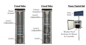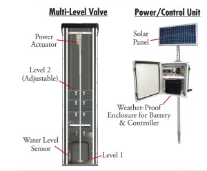 The Inline Water Level Control Structure™ is designed to be installed in the pipe line, so the water enters the pipe, then flows into the box, over the stoplogs, then out the downstream side of the structure. Structures are available in either manual or automatic.